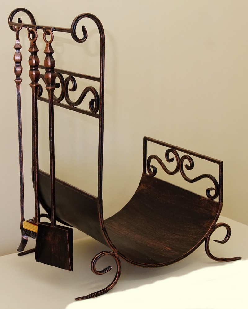 Кованая дровница – удобный аксессуар к отопительному прибору, которым может быть, как камин, так и обычная отопительная печь или мангал. Вы всегда будете иметь небольшой запас сухих дров в доме, что значительно ускорит процесс растопки.
